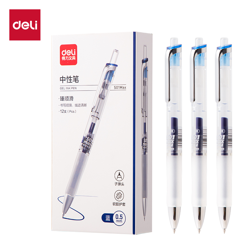 得力S01Max-0.5mm弧度收口子弹头臻顺滑按动中性笔