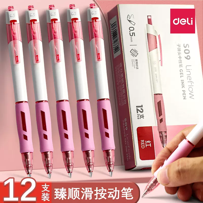 得力S05Pro-0.5mmST头刷题速干按动中性笔(12支/盒)