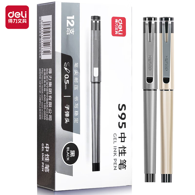 得力S02-0.7mm思达经典按动中性笔/黑色/红色(12支/盒)