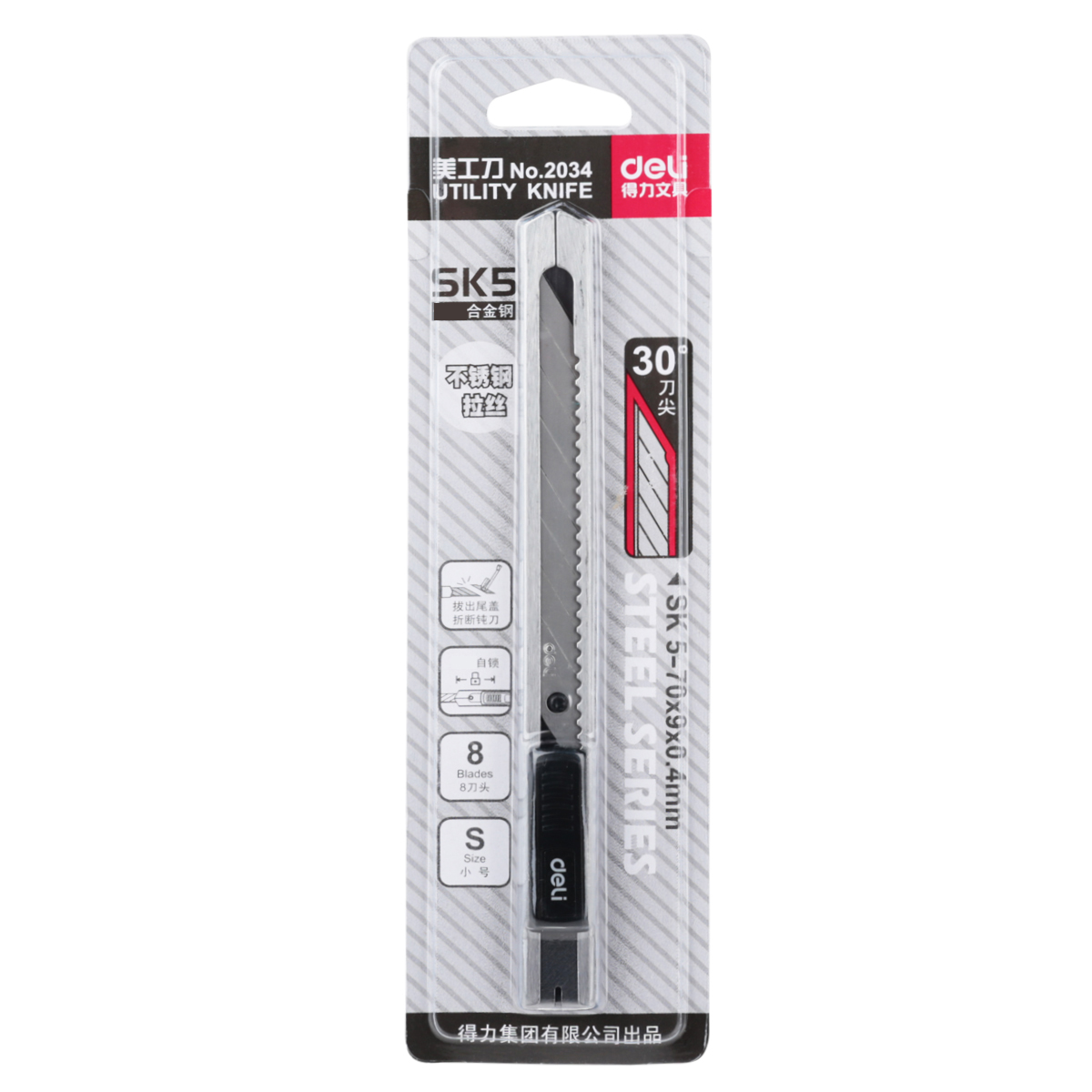 /得力2034-30°刀尖小号银色金属美工刀(24把/盒)