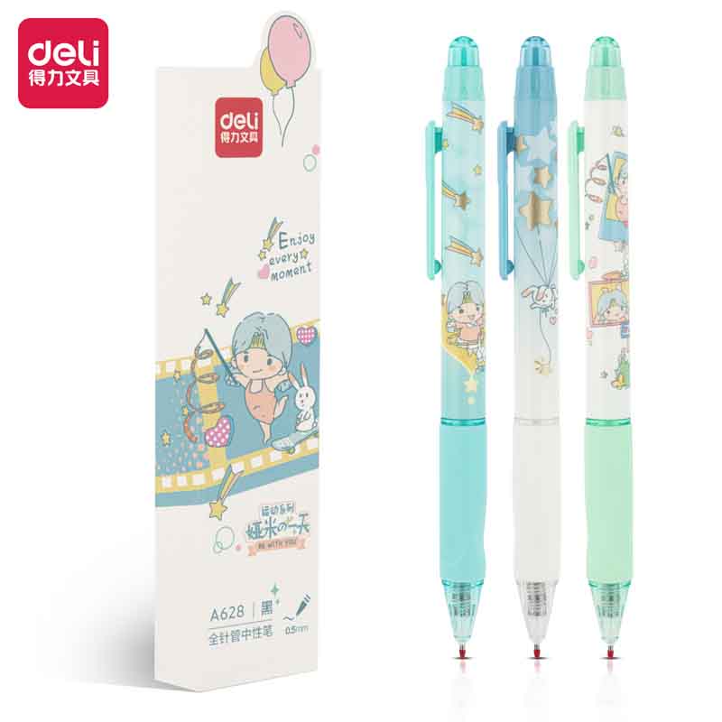 得力S1619-0.5mm全针管秋日暖暖直液式走珠笔(黑)(12支/盒)