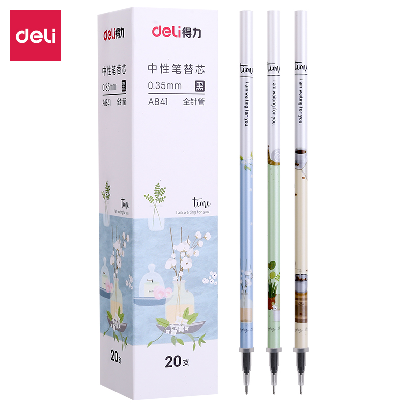 得力A841-0.35mm全针管中性笔替芯(黑)