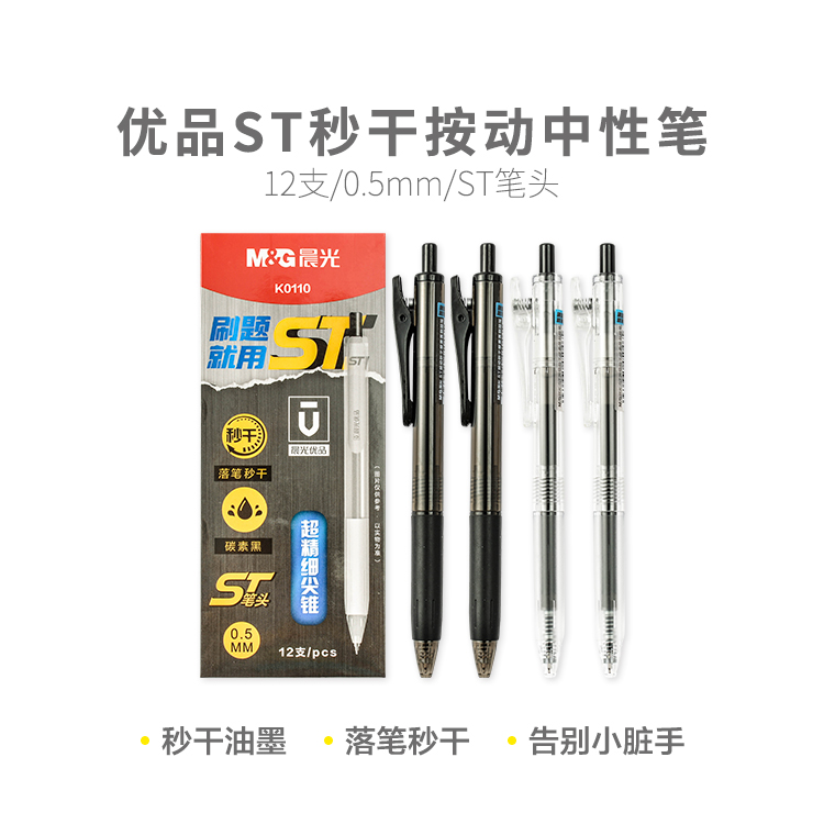 晨光AGPK1601-0.5mm/ST头秒干架装特别好写按动中性笔(黑色)(12支/盒)